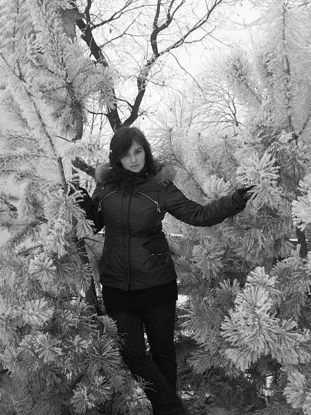 Женщина в лесу зимой у снежной, красивой елочки в теплой зимней куртке. Да гулять зимой по лесу на лыжах не только интересно, но и полезно. Но не стоит гулять одной, ибо в лесу могут быть опасные звери, к тому же они очень голодные.