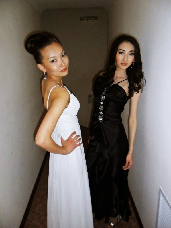 Две китаянки на свадьбе, одна в белом платье, другая в черном. И обе они стройные красавицы, скоро начнется праздник, к которому все долго готовились. Свадьба бывает раз в жизни и на ней нужно оторваться по полной.