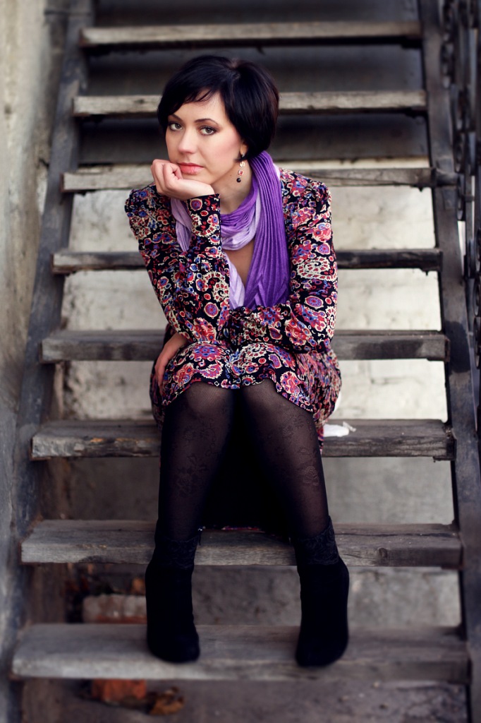 Сидит на лестнице задумчиво