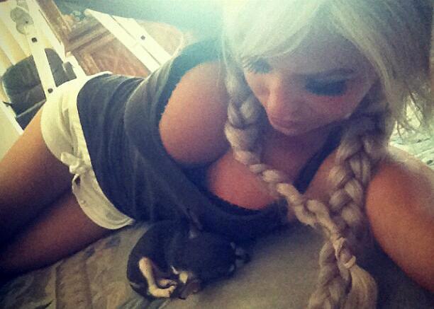 Молоденькая американка хочет чтобы на нее обратили внимание, подняв руку вверх, девушка сфотографировала свою красивую грудь. Две заплетенные косички говорит о том, что американка студентка и постоянно хочет отрываться.