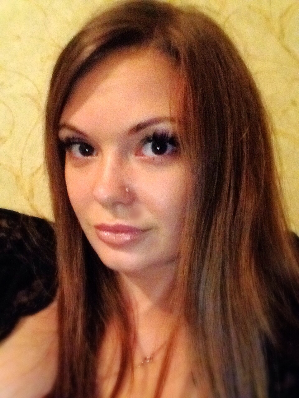 Красивая девушка с пирсингом в носу и накрашенными тонкими губами улыбается для фотографа. Выглядит эта девушка богато, поэтому зевать здесь не надо. Возможно, когда-нибудь она будет фотомоделью.