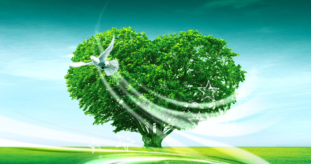 Зеленое дерево в виде сердца стоит прямо по середине большого поля. Вокруг него летает белый голубь и пускает в небо звездочки. Под таким деревом нужно лежать влюбленным и думать о своей семье.