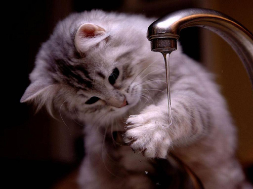 Вы видели как коты моют лапы? Если нет, то это фото для вас. Котенок подошел к крану и моет руки прямо под ним, как маленький человечек. Самое главное в такой ситуации - не свалиться в раковину с водой, ведь это может плохо закончиться.