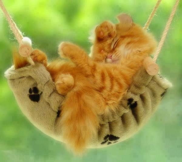 Маленький рыжий котенок спит в гамаке, здесь ему тепло и уютно. Котенок недавно перекусил и сейчас ему очень хорошо, ведь после тяжелой работы можно хорошо поспать. Главное - чтобы никто не мешал.