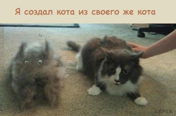 У моего кота постоянно слазит шерсть, поэтому чтобы она зря не пропадала, пришлось сделать кота из шерсти. Получилась точная копия, прямо один в один. Теперь у меня сразу два домашних животных, и одного не надо кормить, что является большим плюсом. Но с другой стороны и мышей он ловить не будет.