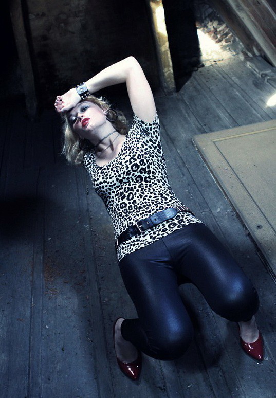 Девушка в леггинсах падает на пол, а поймать ее вряд ли кто успеет. Вообще вокруг мрачно, поэтому возникает вероятность, что ее толкнули вниз. Ну да ладно, стукнется головой, поревет и успокоится.