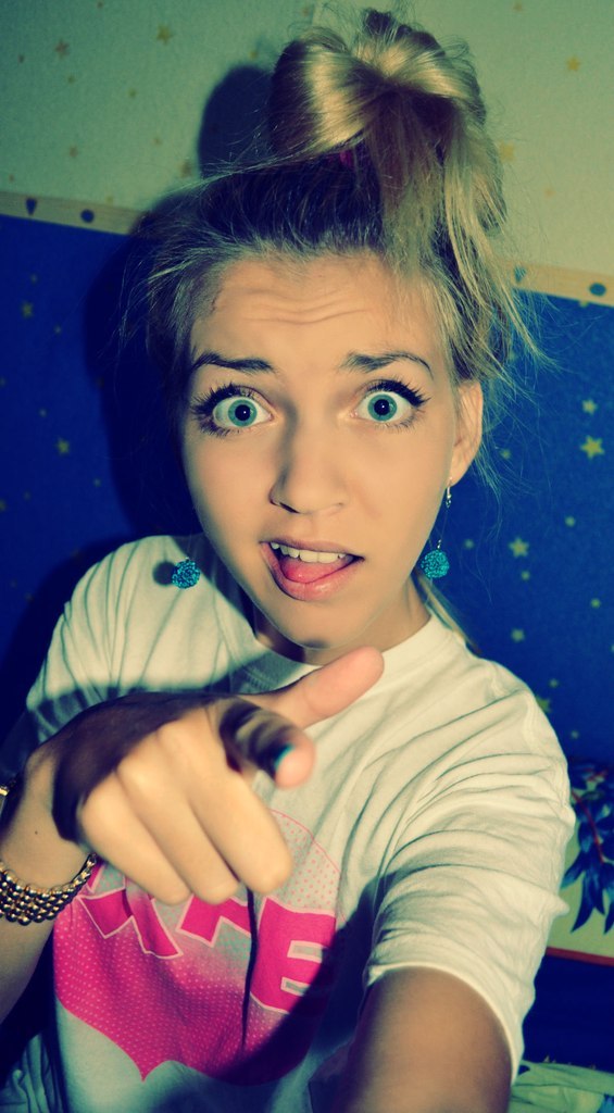 Девушка сделала такое лицо, как будто удивлена очень сильно тем, что увидела прямо сейчас. Никто не знает, что это, но выражение лица у нее отличное: высунутый язык и открытый рот.