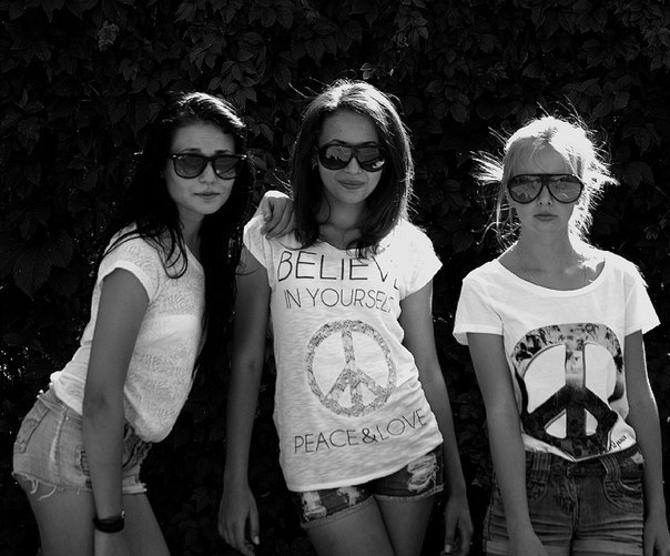 Три стильные девушки надели на себя очки и думают, что жизнь удалась. Еще на их телах короткие шортики и майка с непонятной символикой. Им все нравится гулять и веселиться, ведь это лучшие подруги.
