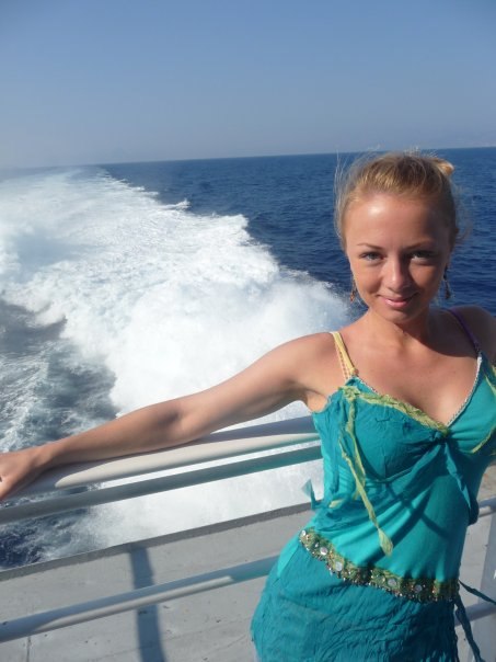 Девушка катается на катере по морю, скорость очень большая, но ей не страшно. И только сзади видно, как вода разлетается в разные стороны. Настроение у девушки отличное и чем ближе к океану, тем веселее.