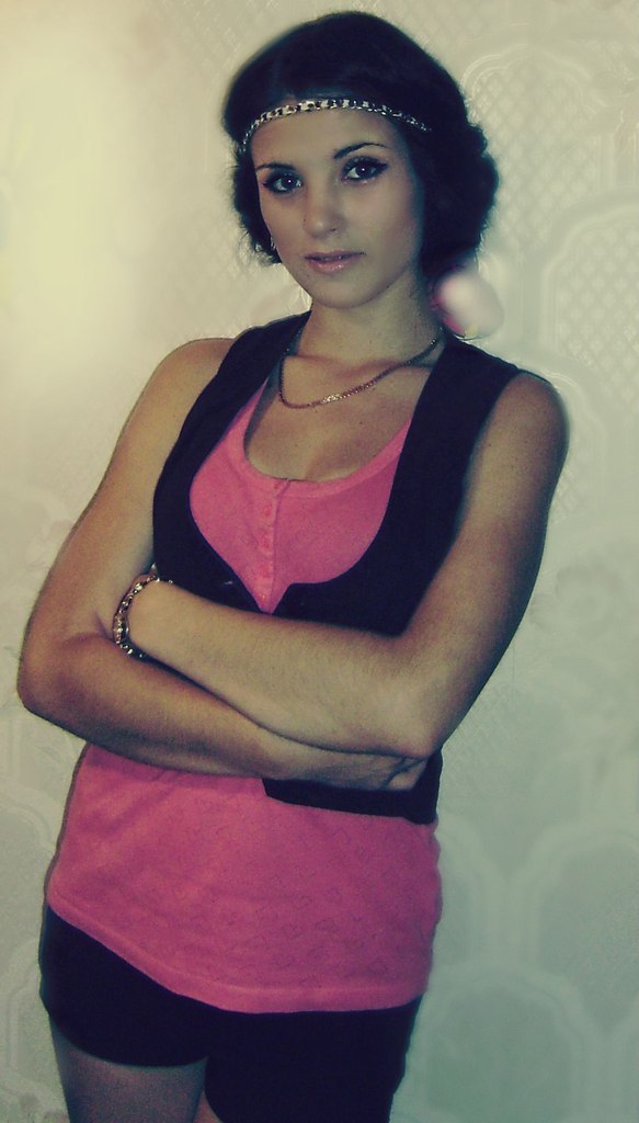 Девушка в жилетке и розовой кофточке сложила руки, сделала так сказать важный вид, как будто девушка такая деловая. Ну а жилетка смотрится как на настоящем менеджере.