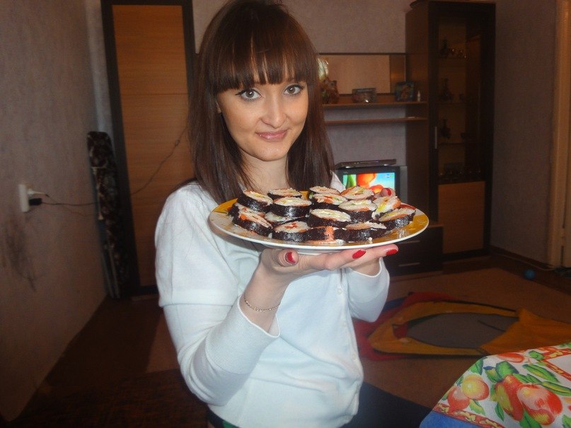 Маша приготовила вкусные роллы, сейчас угостит всех подруг и друзей. Роллы приготовленные в домашних условиях намного вкуснее, чем из кафе, так что все ребята останутся довольными.